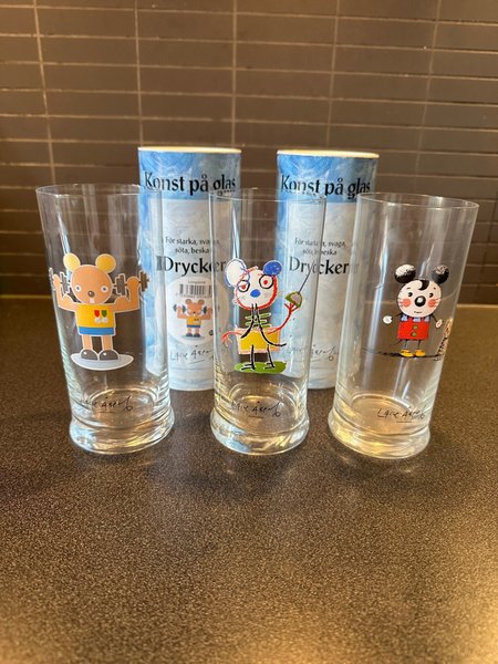 Glas med Lasse Åberg motiv.