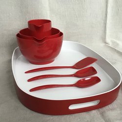 Ostkupa glas med teakbricka 50-tal 60-tal retro vintage