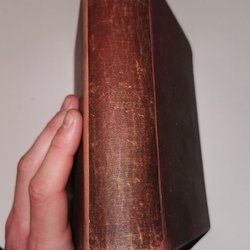 Has some wear and has had some regluing by spine. Though now pretty tight binding. Though some wear. Tanning on spine fresh inside. Now dry stain on one board.
