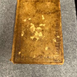 Inbunden, boken är nött och skrivit i, första sidan är borttagen men skulle tror att bibeln är från slutet av 1800-talet