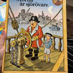En charmig barnbok skriven och illustrerad av Jan Lööf. Boken handlar om en morfar som är sjörövare. Utgiven av Bonnier Carlsen.