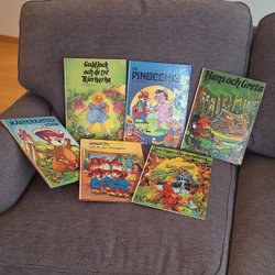 4st sagoböcker med Askungen, Nalle, Tre små grisarna samt Pingvinkvartetten.