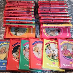 barnböcker/tidningar kan ha fått skador som ritad/trasig sida osv