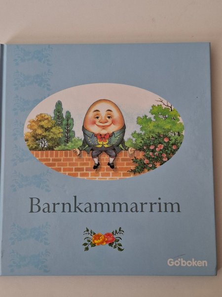 Barnkammarim är en charmig barnbok från Go'boken, perfekt för sagostunder. Boken har en ljusblå omslag med en illustration av Humpty Dumpty sittandes på en tegelmur, omgiven av grönska och rosor. Nedtill finns en bild av två rosor i gult och rött. Boken innehåller rim och ramsor som passar de yngsta läsarna.