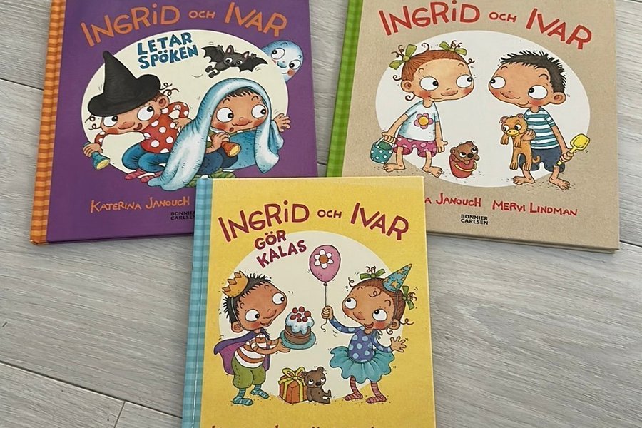 Tre böcker om Ingrid och Ivar: Letar spöken, Gör kalas och Ingrid och Ivar