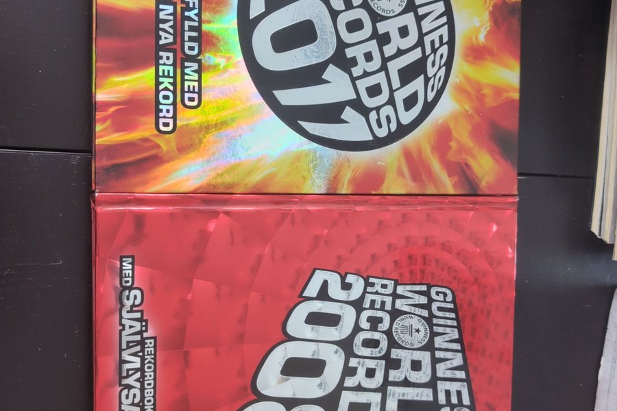 Två utgåvor av Guinness World Records. 2008 års utgåva kommer med självlysande bilder och 2011 års utgåva är sprängfylld med tusentals nya rekord.