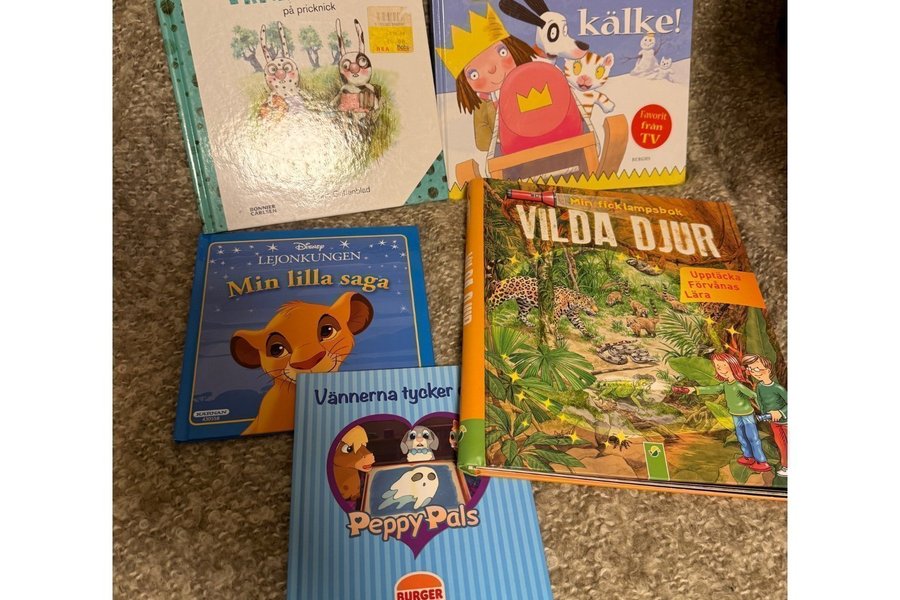 5 barnböcker, fint skick. Fattas ficklampan på boken, men vi gjorde det med vit papper, funkar utmärkt bra.