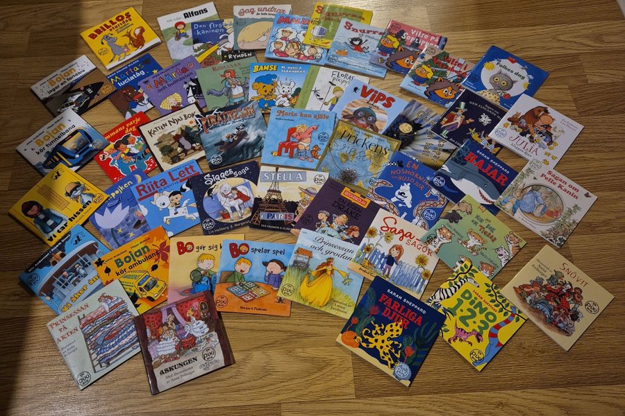 Ett set med diverse Pixi-böcker för barn.