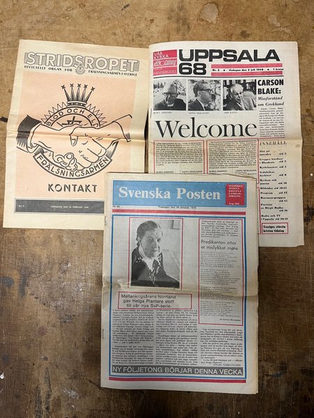 Diverse tidningar säljes. Inkluderar Stridsropet, Uppsala 68 och Svenska Posten.