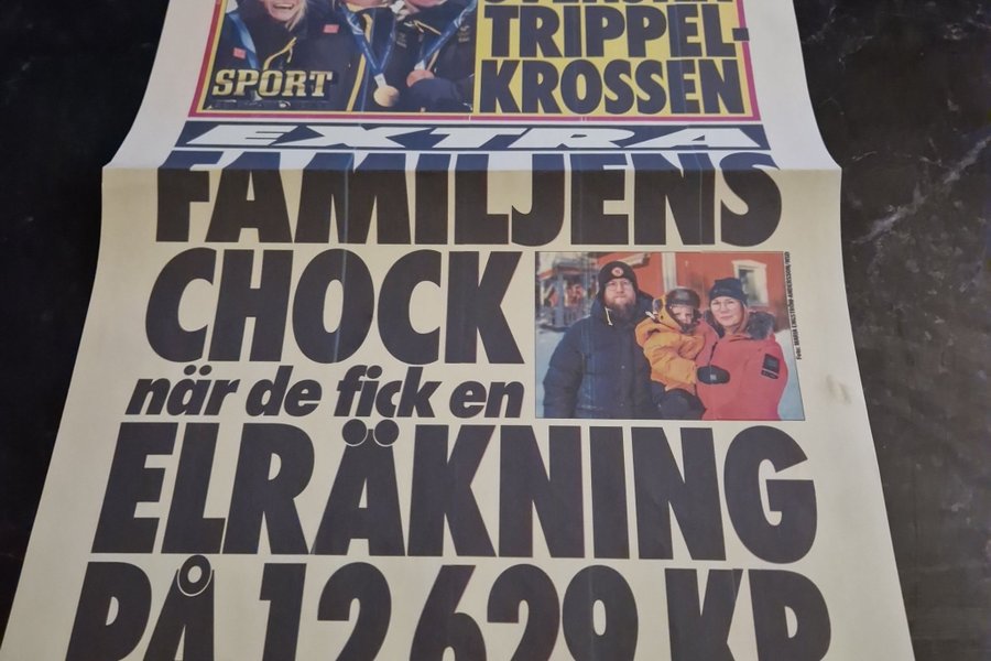 Aftonbladet tidning från onsdagen den 11 februari 2026. Tidningen har rubriker om "Svenska trippelkrossen" inom sport och "Familjens chock när de fick en elräkning på 12629 kr".