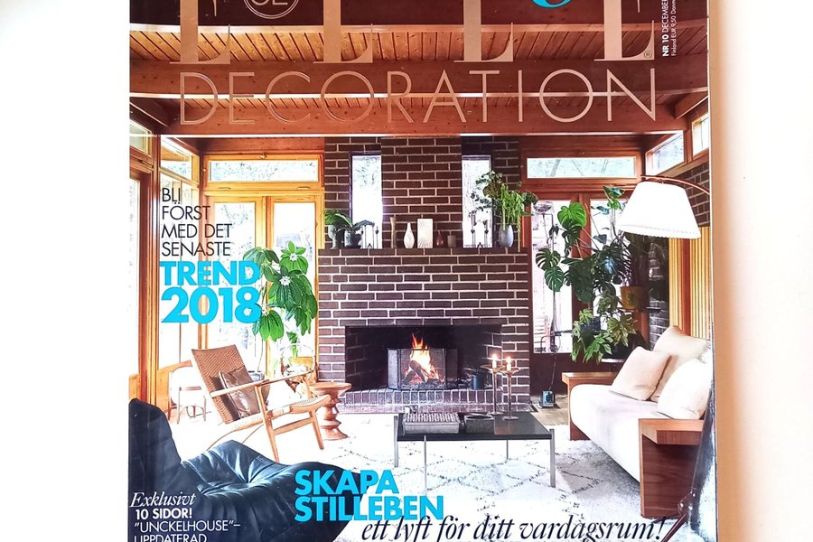 ELLE Decoration tidning från December 2017. Innehåller reportage om trender 2018, "Unckelhouse" och stilleben.