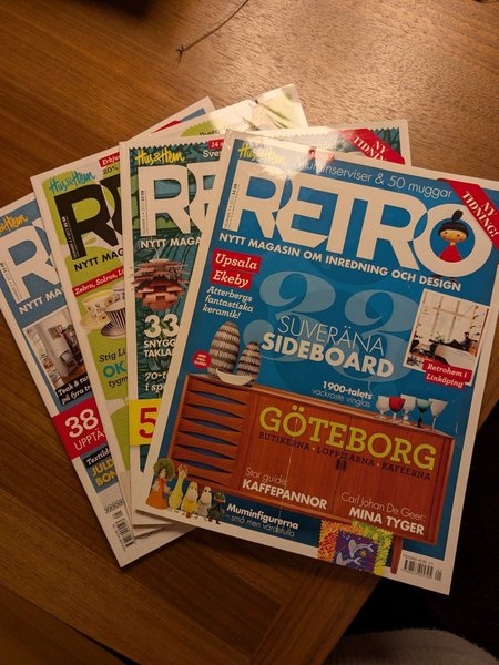 Samling av Retro Hus & Hem tidningar från 2012. Innehåller artiklar om inredning och design. Nr1,3,4 och 5. Originaltryck