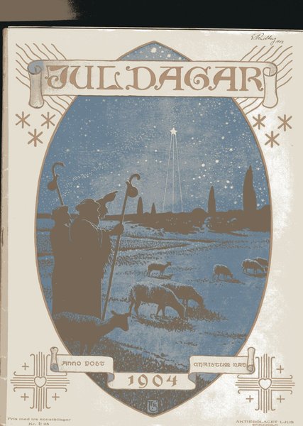 Juldagar från 1904, illustrerad av E. Rudberg. Pris med tre konstbilagor Kr. 1:25. Utgiven av Aktiebolaget Ljus, Stockholm.