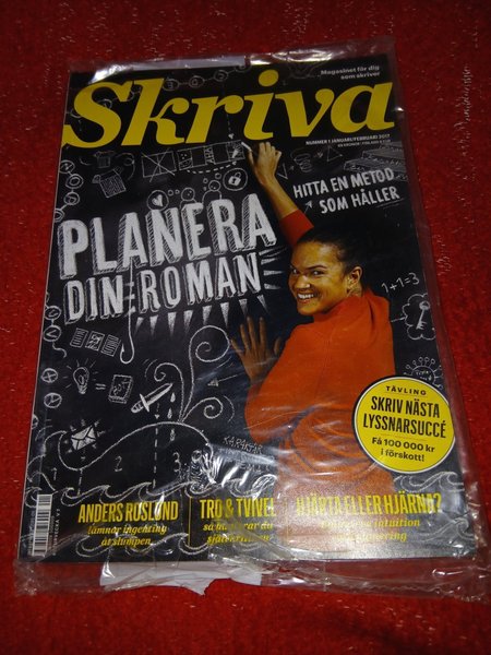Tidningen Skriva, nummer 1, Januari/Februari 2017. Innehåller artiklar om att planera din roman, Anders Roslund, Tro & Tvivel, Hjärta eller Hjärna? och en tävling om att skriva nästa lyssnarsuccé.