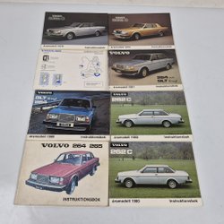 Samling av Volvo broschyrer för olika modeller och årgångar. Inkluderar broschyrer för Volvo 240, 340, 440, 740, S40/V40, V70, S80, XC90 och tillbehör. 22 stycken