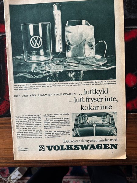 Volkswagen 1960 Annons. Luftkyld fryser inte kokar inte