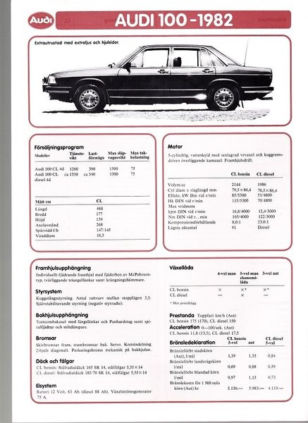 Audi 100 1982 datablad