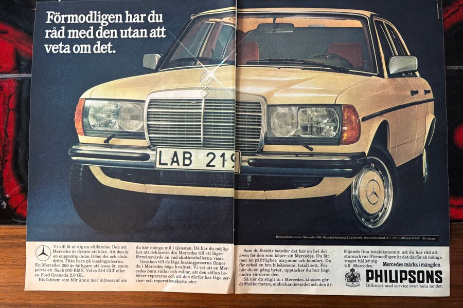 Mercedes-Benz 200 Automatisk, 1982 annons