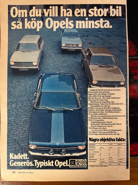 Opel Kadett Rallye 1970 annons