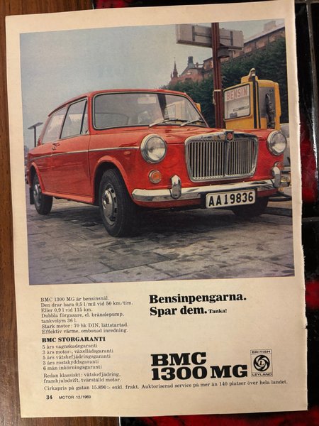 BMC 1300 MG 1969 annons