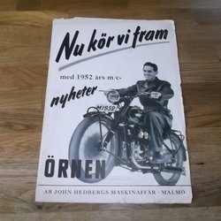 En reklama för Rex 59 mopeden. Affischen framhäver mopeden som jämnar vägen och har en accelerationssnabb Victoria-motor. Den har även helkapslat kedjeskydd och vackra linjer och läckra färger. Tillverkad av AB Maskinfabriken Rex