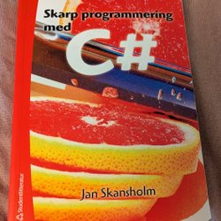 Bok med hårt omslag.
