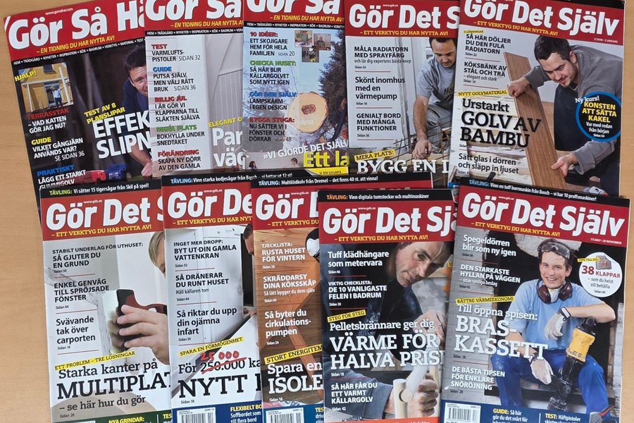 Tidningen "Gör Det Själv" är en praktisk guide för hemmafixare, med fokus på byggprojekt, renovering och trädgårdsarbete. Varje nummer innehåller detaljerade instruktioner, tips och inspiration för att förbättra ditt hem. Detta nummer innehåller artiklar om att dölja radiatorer, bygga köksbänkar av stål och trä, samt lägga golv av bambu. Dessutom finns en guide till att sätta kakel. 3 nr från 2003, 5 nr från 2007 och 2 nr från 2008.