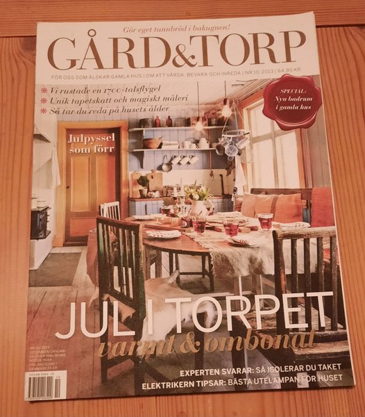 Tidning Gård & Torp, nummer 10 från december/januari 2013. Innehåller artiklar om att rusta en 1700-talsflygel, unik tapetskatt och hur man tar reda på husets ålder. TIDSAM 0954-10.