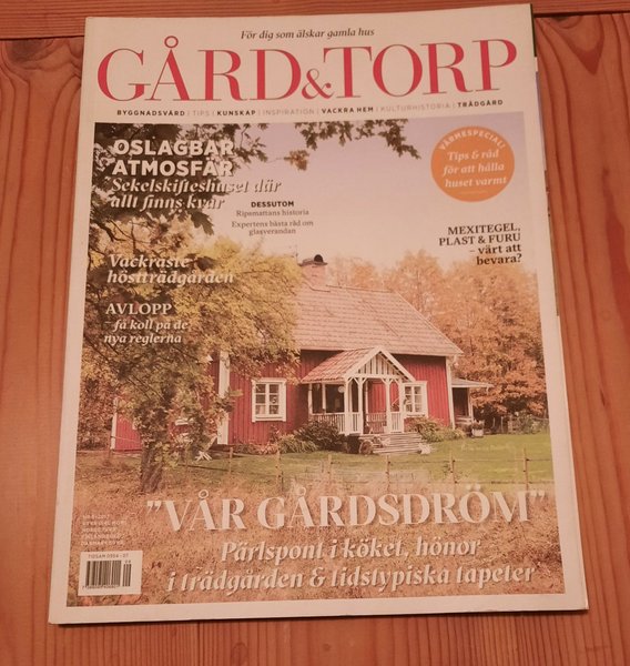 Tidningen Gård & Torp från 2017. Innehåller artiklar om byggnadsvård, vackra hem, trädgård och kulturhistoria. ISBN: 7388095406901