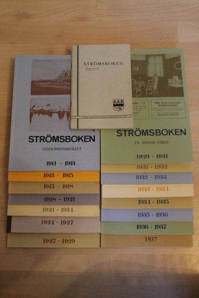 Komplett samling av Strömsboken åren 1911-1937. Inkluderar Ströms Hembygdsförenings årspublikation från 1970.