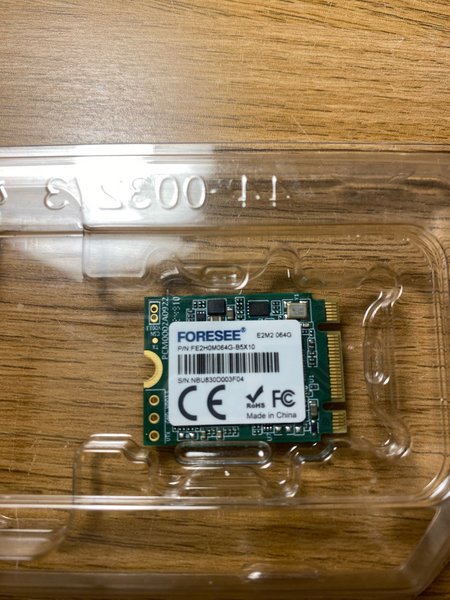FORESEE E2M2 064G med P/N: FE2H0M064G-B5X10 och S/N: NBU830D003F04.