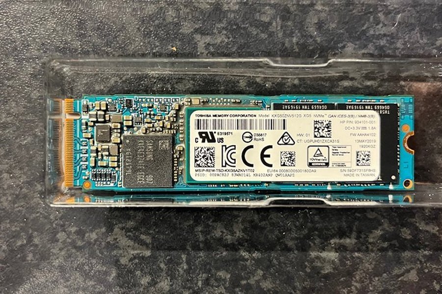 Toshiba Memory Corporation SSD 512GB, modell KXG50ZNV512G. HP P/N: 934101-001. 2280