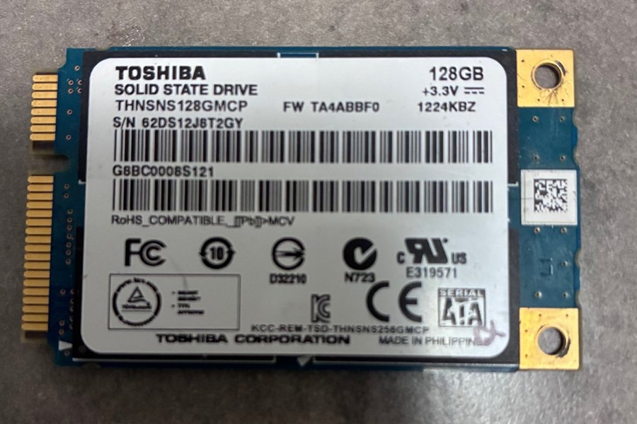 Solid State Drive från Toshiba med en kapacitet på 128GB. Fungerar bra