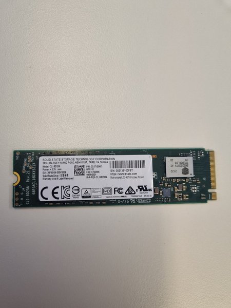 Solid State Drive från Solid State Storage Technology Corporation. Modell CL1-8D256. Tillverkad i Taiwan.