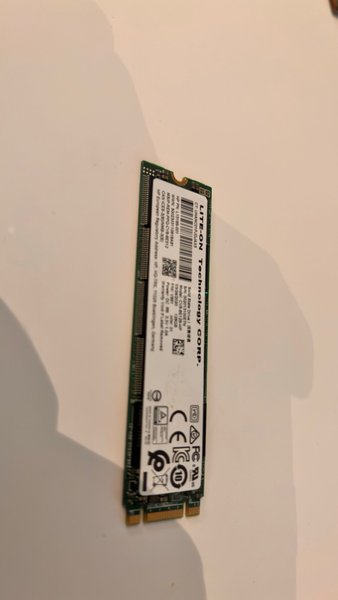 Solid State Drive från LITE-ON Technology Corp. Modell CVB-BE128-HP. HP artikelnummer L15189-001. Serienummer 002013100EN. Tillverkad 2020-03-24. Lagringskapacitet 128GB.
