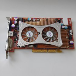 Grafikkort från NVIDIA och Dell. Modellen har två DVI-utgångar och en S-Video-utgång.