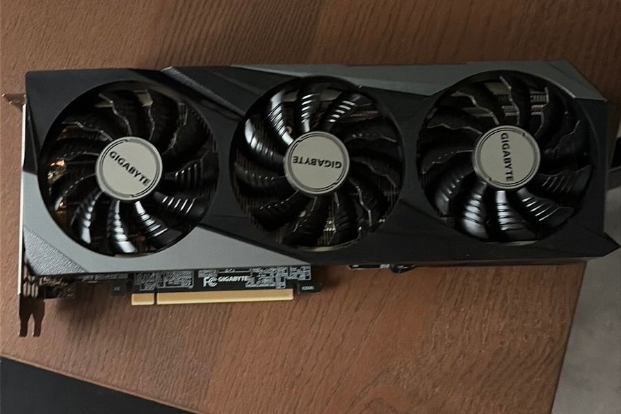 GIGABYTE grafikkort med tre fläktar för effektiv kylning. Kortet är designat för att ge stabil prestanda.