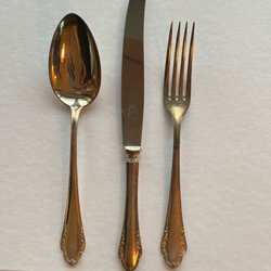 Sex stycken svenska nysilverskedar med lanskapsvapen. Märkta med Mema EX ALP. Behöver putsas.