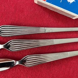Har flera annonser ute med Facette bestick tex serveringsbestick, TÅRTKNIV , skedar på 17.6 cm och serveringsskedar, såsslev , soppslev mm