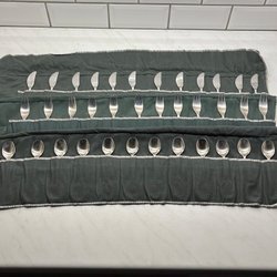 Du bjuder på 12 matknivar, 12 matgafflar och 12 matskedar. Matknivens längd är 20 cm.