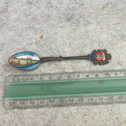 En sockerskopa med ett detaljerat handtag. Skopan har en bred, rektangulär form.