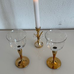 6 st. Guldfärgade Mockaskedar med rosmotiv i fin ask. Enligt bilder på storlek L= 11,5x2,5 fint skick