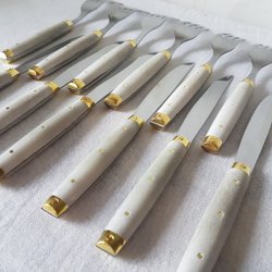 Se två sista bilderna på de tre besticken som har någon liten defekt. Upplevs överlag i fint använt skick.