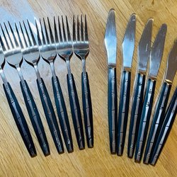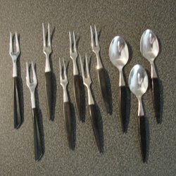 Bakelitbestick matgafflar med knivar och skedar& 4 kaffeskedar