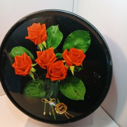En vintage plåtlåda från A.B. Pastill Gefle, Kungl. Hofleverantör. Märkt "Specialfabrik för Chokladpraliner & Konfityrer".