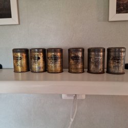 Ett set med två burkar från Glad Design by Tiger köpenhamn Danmark Burkarna har färgglada mönster och lock i olika färger.