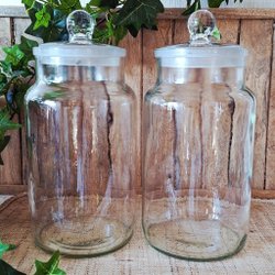 Två glasburkar med lock.