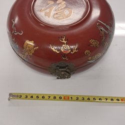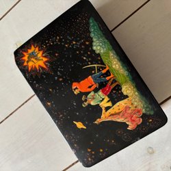 Fin presentask eller för förvaring av små ting. Silverglitter utanpå med vackra band och stenar i mönster på locket. 9 x 8 x 5 cm. Vintage