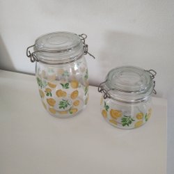Två glasburkar. En med korklock och en röd chili.