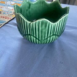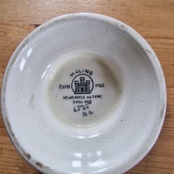 Grön skål med ett ansikte på utsidan och blå insida. Perfekt till flingor